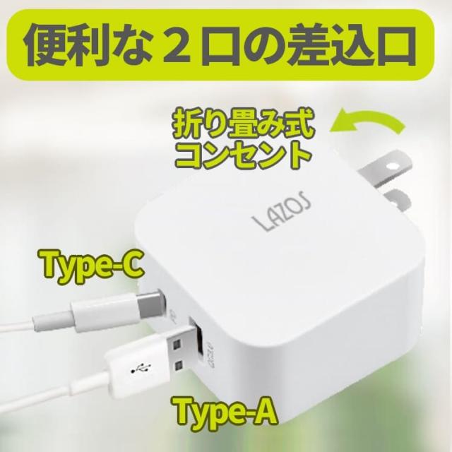 USB ポート1口、Type-C 1口の2口差込口があり、2台同時に充電が可能。