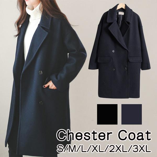 チェスターコート ミディアムコート ラグランスリーブ コクーンコート 小柄 レディース 秋冬コート 冬服 大きいサイズ カジュアル 定番 シンプル 韓国風 大人 アウター ネイビー ブラック