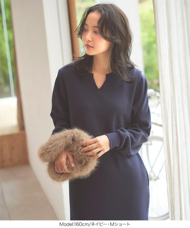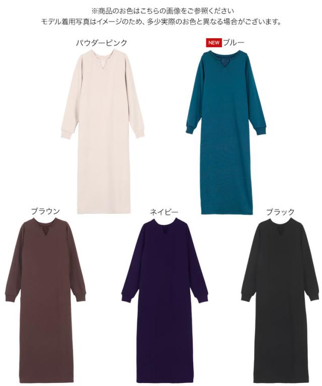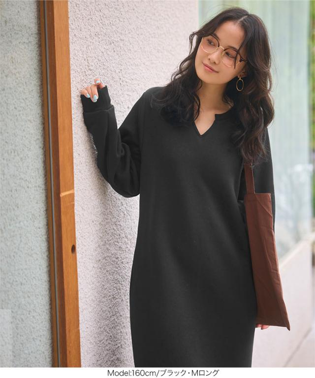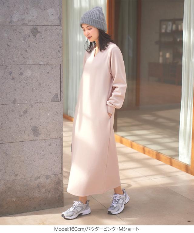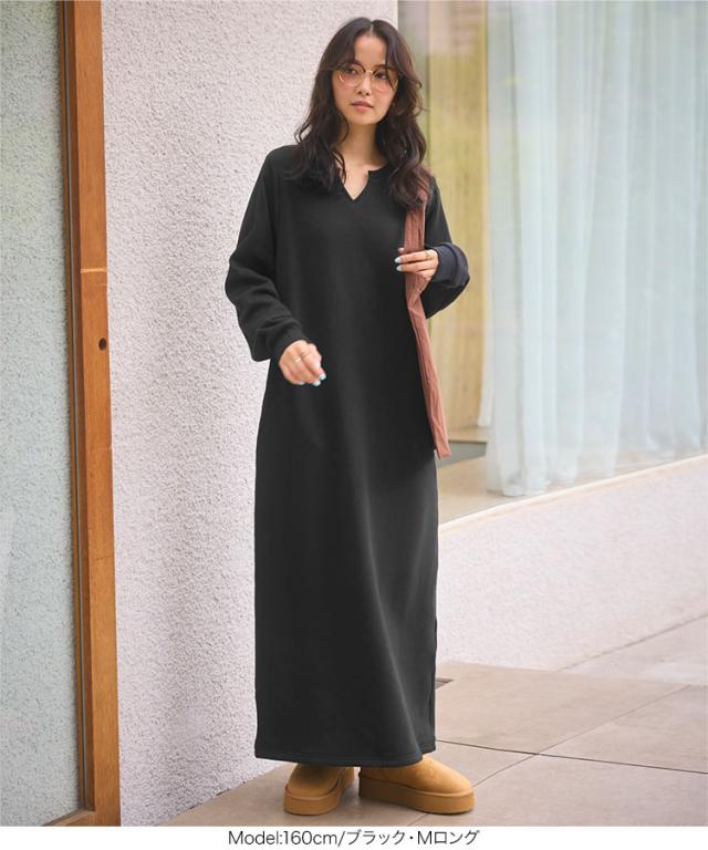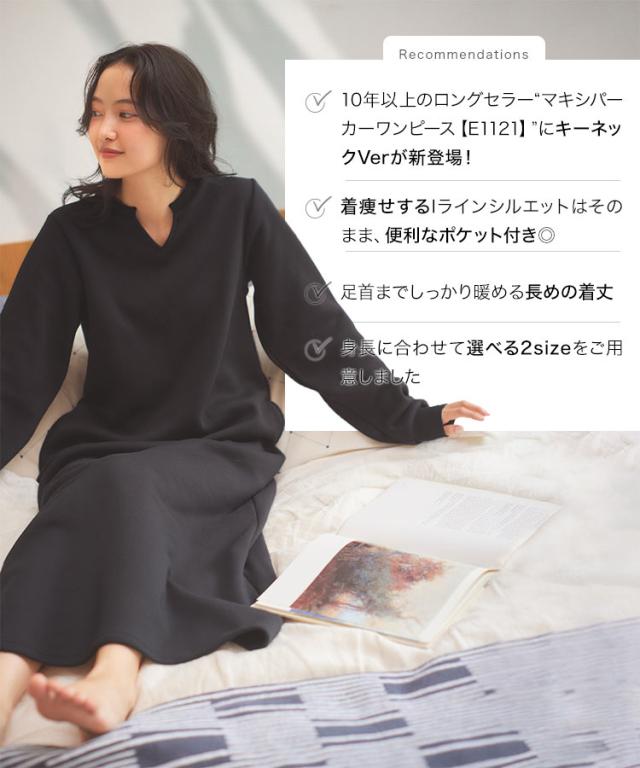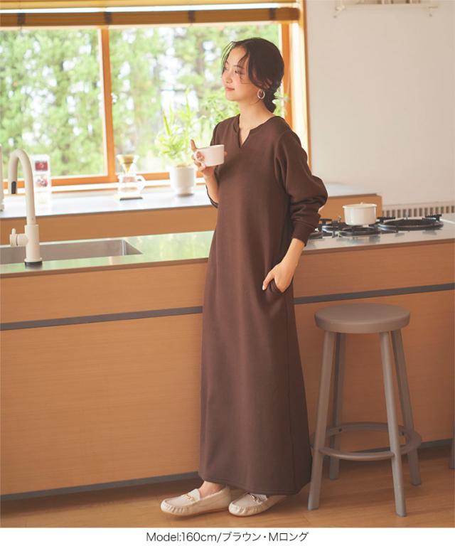 [ ぬく盛り ] 選べる丈 キーネックマキシワンピース E3435 入荷済 ぬく盛り ぬくもり 裏起毛 裏シャギー ワンピース ワンピ キーネックワンピース 裏起毛ワンピ あったかワンピ マキシワンピース マキシ ロング丈 長袖 E1121