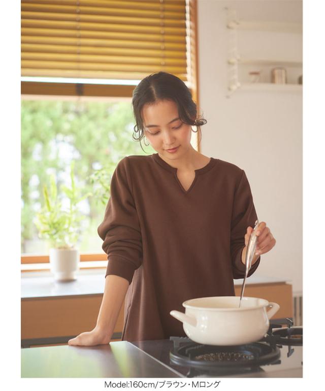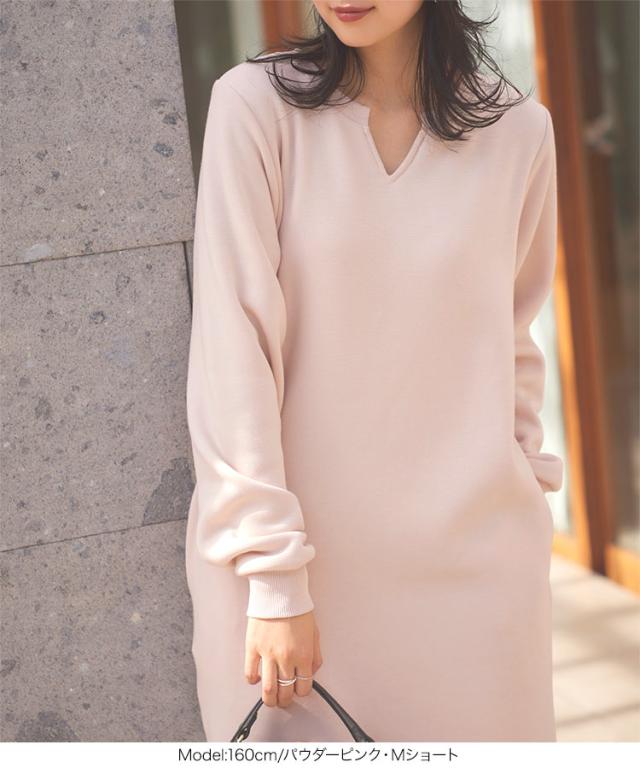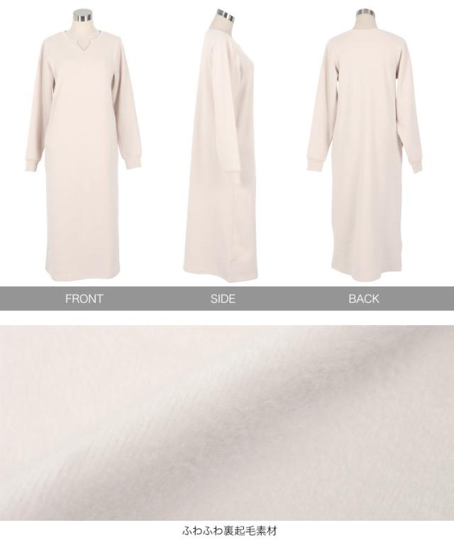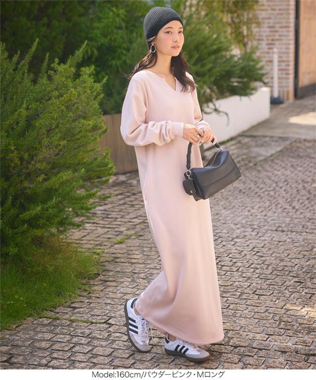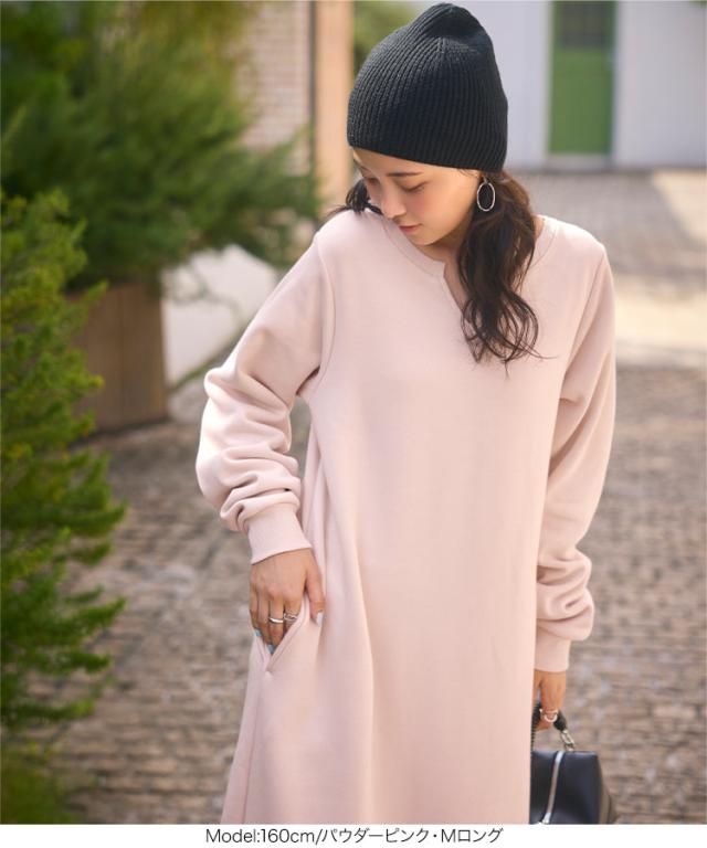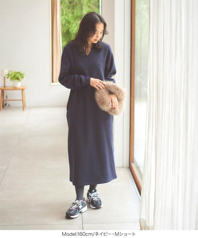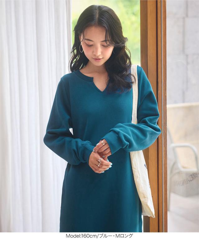 [ ぬく盛り ] 選べる丈 キーネックマキシワンピース E3435 入荷済 ぬく盛り ぬくもり 裏起毛 裏シャギー ワンピース ワンピ キーネックワンピース 裏起毛ワンピ あったかワンピ マキシワンピース マキシ ロング丈 長袖 E1121
