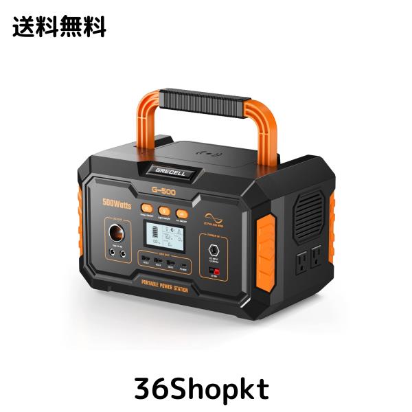 ポータブル電源 大容量 500W GRECELL 140400mAh/519wh ポータブルバッテリー 純正弦波 MPPT制御方式採用 家庭用蓄電池 PSE認証済 ワイヤ