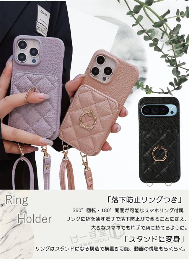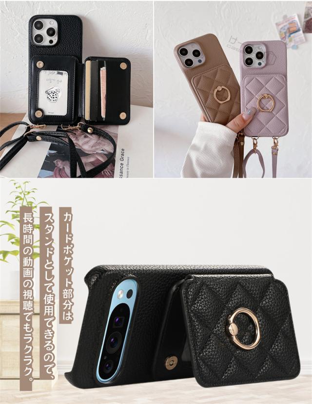 スマホショルダー リング付き Googleピクセル7a Pixel 8a Pixel9Pro ケース ショルダー おしゃれ 可愛い Google Pixel 7 8 aケース グーグルピクセル 7a 8a 6a 携帯ケース カード収納 背面手帳型ケース キルティング 背面カードケース 携帯ショルダーストラップ 斜め 肩掛け