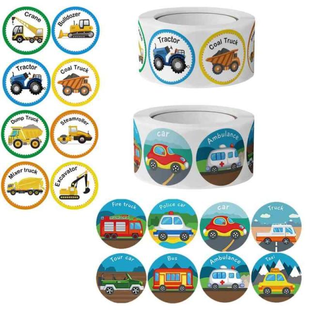ごほうびシール 1000枚入り 2巻 ご褒美 よくできました 教師褒美用 英語 トイレトレーニング シール止め付き 直径25mm (車)