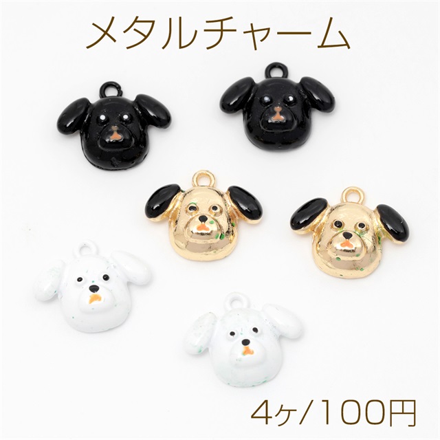 メタルチャーム エポ塗装加工 犬モチーフ いぬチャーム ドッグ アニマルチャーム 全3色 1カン付き 約12×15mm (4ヶ)