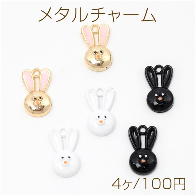 メタルチャーム エポ塗装加工 兔モチーフ うさぎチャーム ウサギ アニマルチャーム 全3色 1カン付き 約9×16mm (4ヶ)