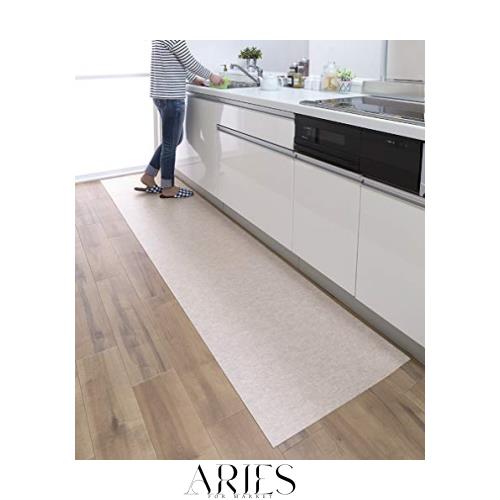 Sanko 【日本製 拭ける 撥水】サンコー キッチンマット ずれない 台所マット ロング 60×240cm ベージュ おくだけ吸着 KP-79