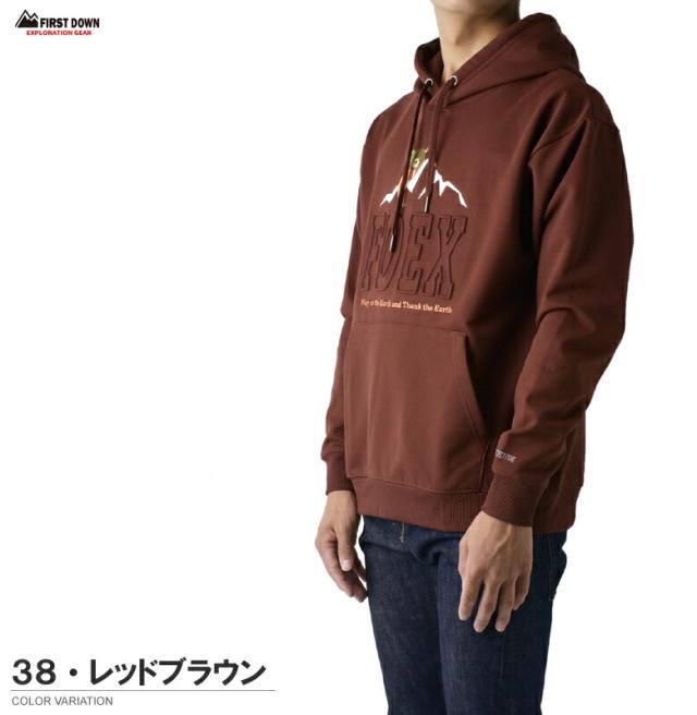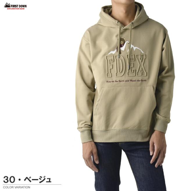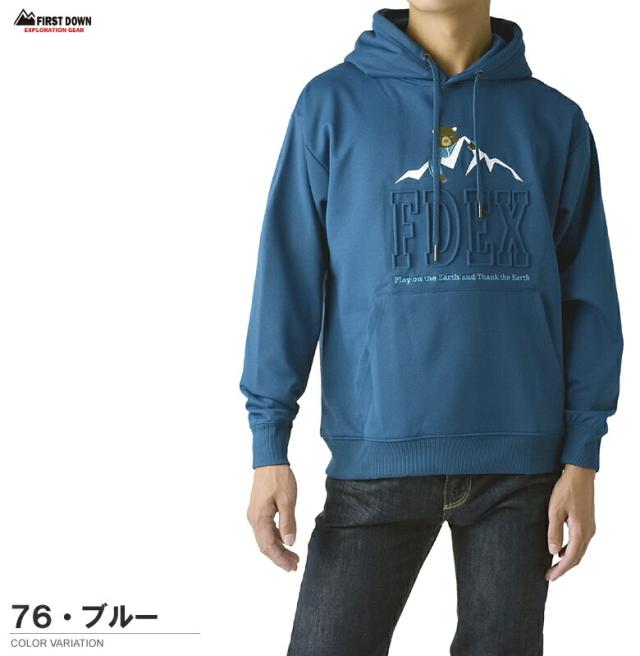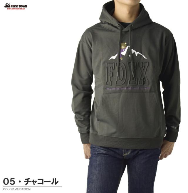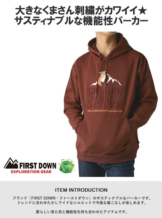 FIRSTDOWN ファーストダウン メンズ パーカー ベア刺繍 くまさん刺繍 エンボスプリント ワイドシルエット 軽量 速乾 撥水 テフロン加工 サスティナブル 正規品【B2J】