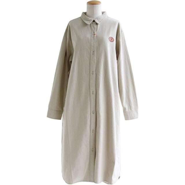 ワンピース レディース シャツ 長袖 ロング シャツワンピ フランネル ネルシャツ 綿100% 起毛 ワンポイント 秋 冬 体型カバー 着痩せ カジュアル パティ