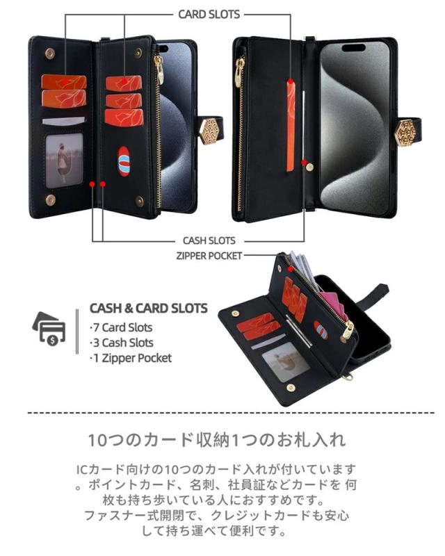 カバーにはカードポッケトがあるので、カードを収納できて、小銭や名刺などを入れる、ゆっくりと外に出て。