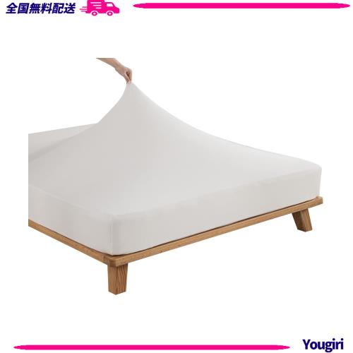 【対応サイズ】90cm〜120cm(幅)x180cm〜210cm(縦)x35cmまで(マチ)・セミシングル、シングル、セミダブル対応ボックスタイプのびるシーツ。【本体サイズ】85x180x32cm