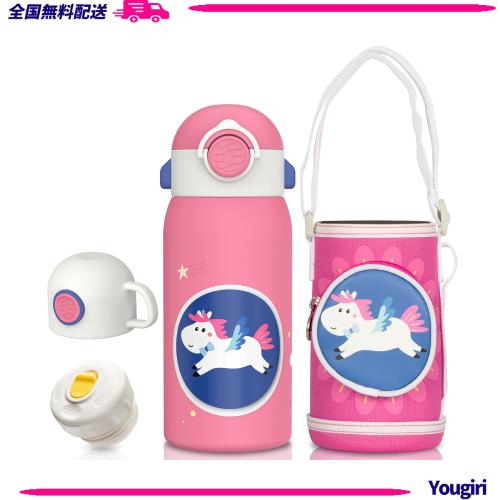 ◆商品名:Fjbottle 600ml 子供 水筒 2WAY ストロー ワンタッチ 直飲み キッズボトル 保温保冷 漏れない まほうびん コップ付き 収納カバー付き マ