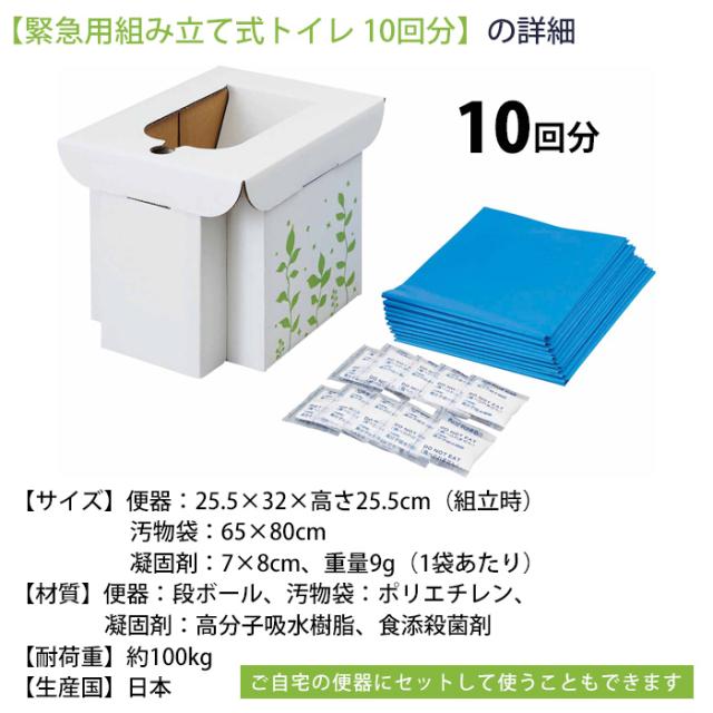 緊急用組み立て式トイレ 10回分 コジット 緊急用 トイレキット 凝固剤付き 非常用トイレ 簡易トイレ 防災 グッズ アウトドア 非常用 断水 災害 緊急トイレ ダンボール 洋式 組立式 ポータブルトイレ テント キャンプ 車の中 持ち運び 備蓄 日本製
