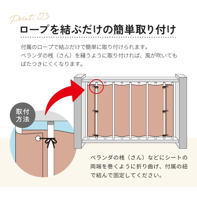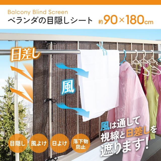 付属のロープで結ぶだけ ベランダ用目隠しシート 風除け 日除け シェード 屋外 90×180cm サンシェード ベランダ マンション 賃貸 集合住宅 バルコニー テラス 隙間 落下防止 西日対策 風を通す 目隠しネット 通気性 日よけシェード 暑さ対策