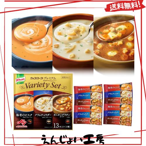 クノール カップスープ プレミアム 3種13本入 アソート 詰め合わせ スティック 海老 ビスク クラムチャウダー オニオン 贅沢野菜