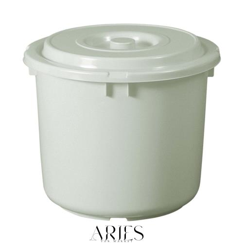 サイズ:直径42×高さ35cm、重量:1550g、容量:30L、材質:本体=ポリエチレン、蓋=ポリプロピレン、付属品:専用押し蓋、生産国:日本