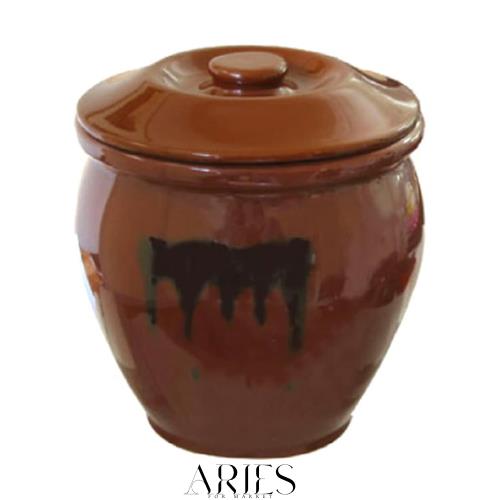 ◆商品名:リビング 漬物容器 丸かめ 4号 7.2L 陶器 樽 ぬか漬け 梅漬け 保存容器 丸型 茶色