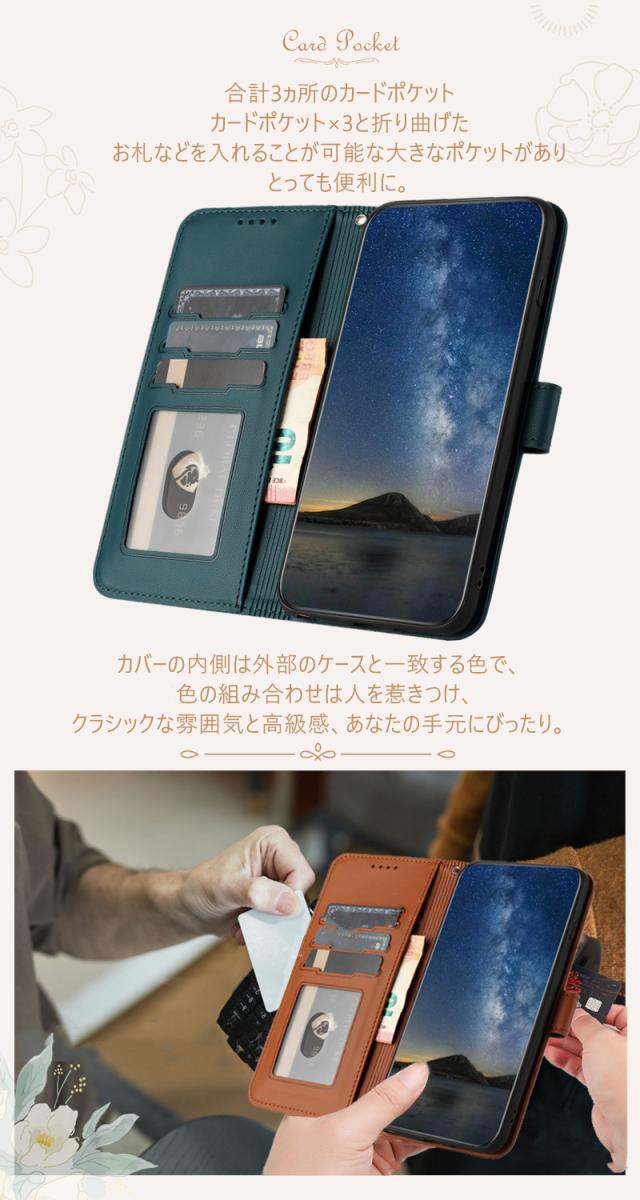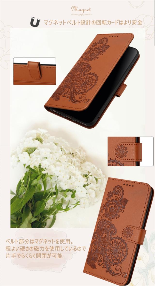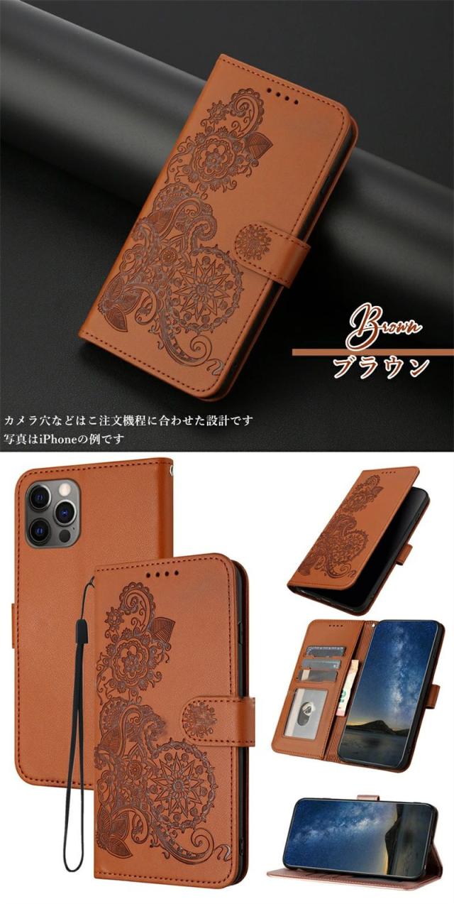 ●なめし革風の色合いに、お洒落なエンボス加工が目を引くデザインの手帳型スマホケースです。 ●シンプルでスタイリッシュなデザインで、質感の良いPUレザーを使用 ●デイリーにも、ビジネスにも馴染む良質なデザインです ●マグネットを内蔵しているので、ピタッと閉じやすい設計です ●中のTPUカバーと、外側のPUカバーのダブルカバーでしっかりと大切なスマホを守ります ●スピーカーホールがついているので、蓋を閉じたまま通話可能 ●蓋の内側にはカードホルダーと、マルチポケットがついているので、ICカードや紙幣を収納可能 ●裏地はオシャレな花柄、細かい所まで気を配ったお洒落なデザイン ●スタンド機能つきで、動画視聴などに便利 ●豊富なカラーバリエーションからお選びいただけます ※写真はアイフォンの例です。 |