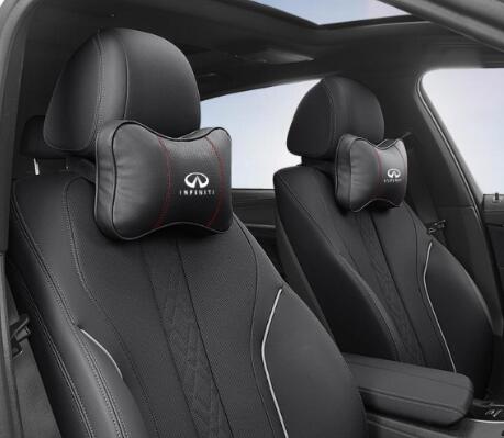★インフィニティ★ロゴ入りき 車用記憶 通気性弾性 ネックパッド レザー ネックパッド 汎用 車載首枕 ヘッドレスト★2個★4色選択可★