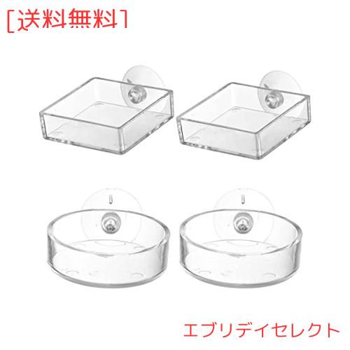 RICISUNG 4個セット 水槽用 フードフィーダー 給餌器 水槽 フィーダーカップ フィーダー アクリル製 吸盤付き ワームフィーダ 餌入れ 餌