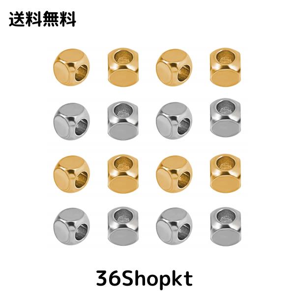 UNICRAFTALE 約60個 2色 4mm キューブビーズ ステンレス ビーズ 立方体ビーズ 三乗ビーズ ペーサービーズ 金属ビーズ メタルビーズ ビー