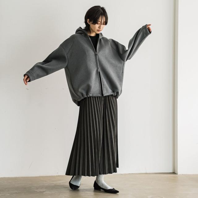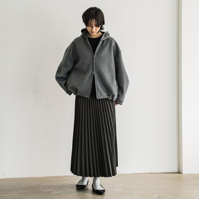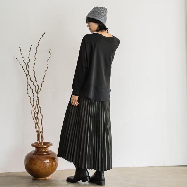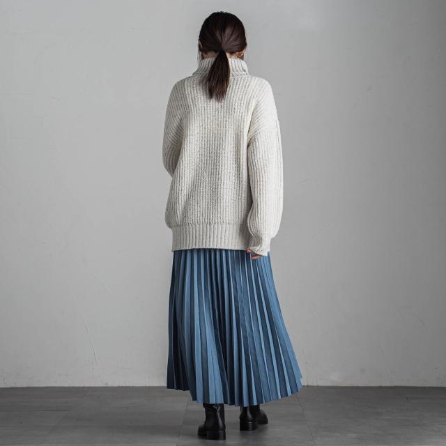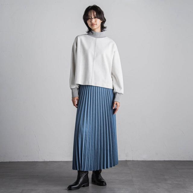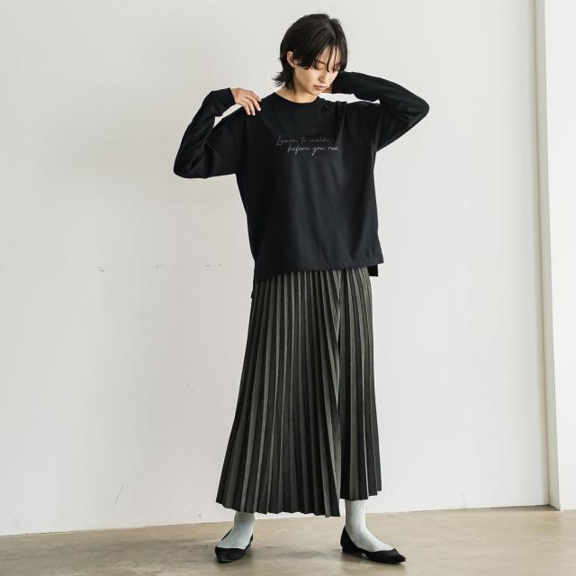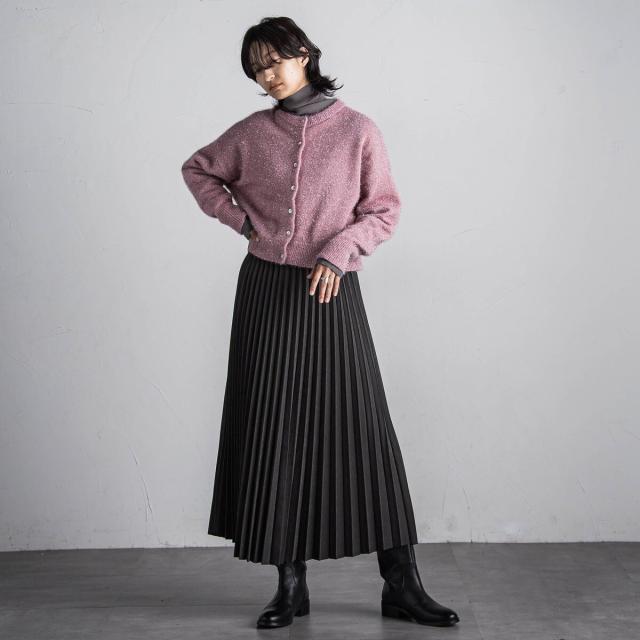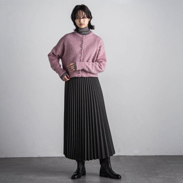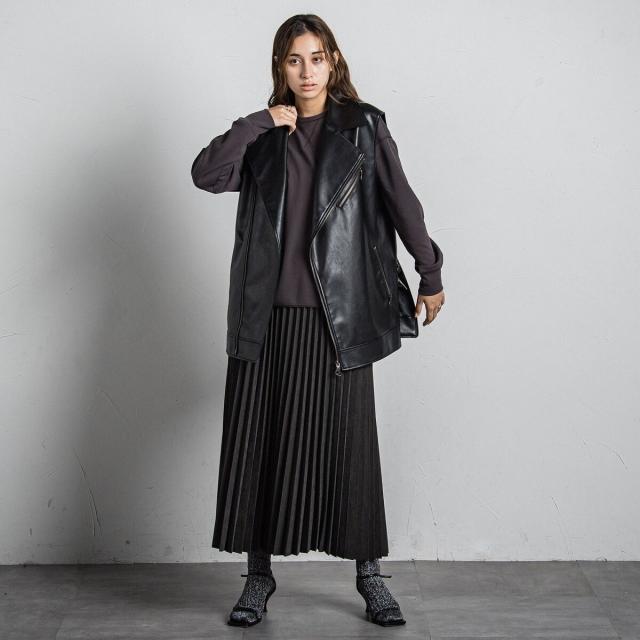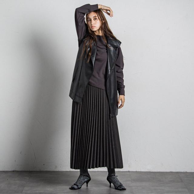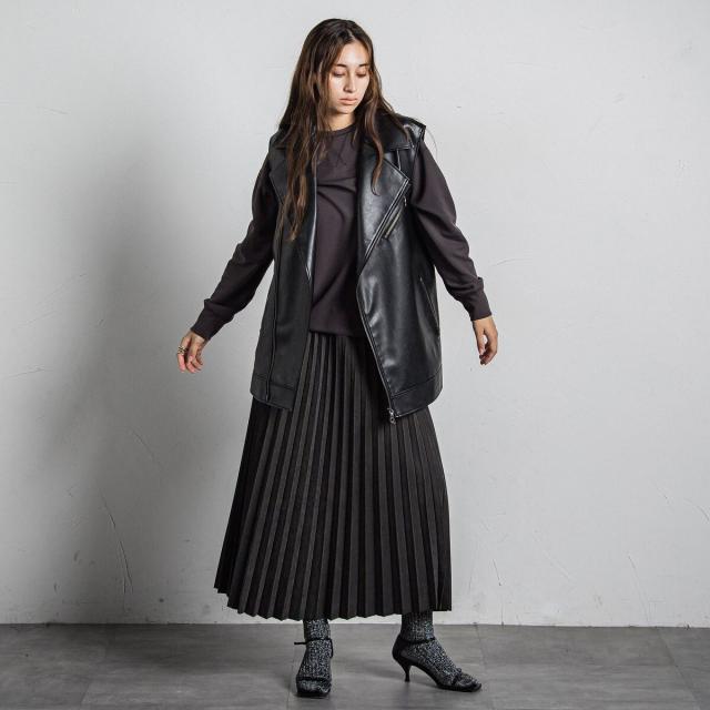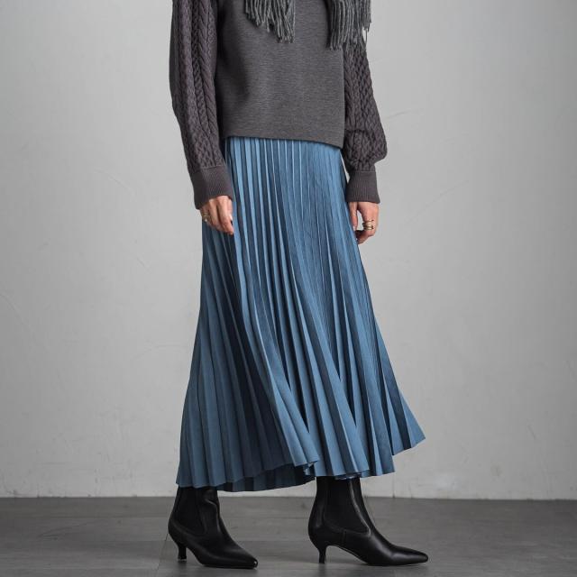 スウェードライクならではの質感がムード漂う、アコーディオンプリーツのロングスカート。