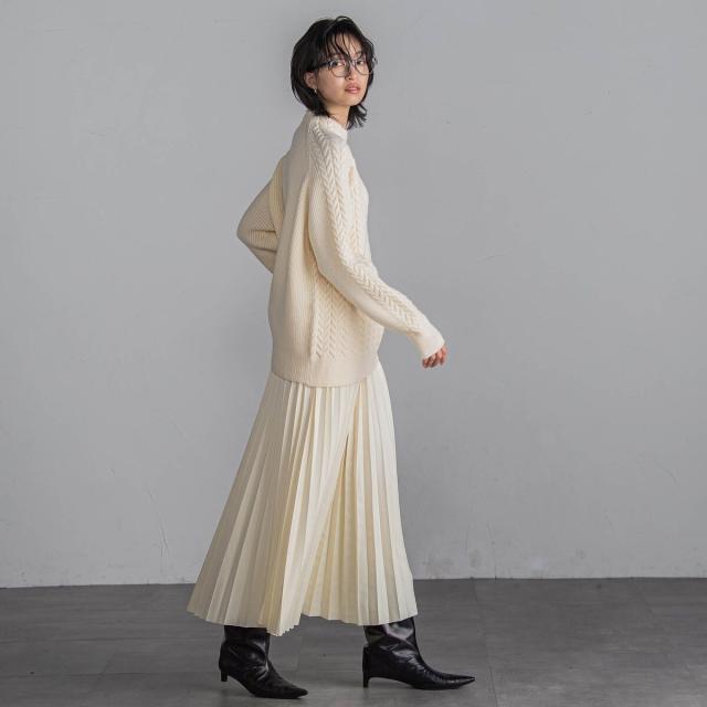 関連ワード:MAYSON GREY socolla メイソングレイ ソコラ 大人カジュアル 2024秋冬 2024AW 冬 冬服 ポリエステル キレカジ ゴム プリーツスカート 10~15度におすすめ セレモニー オフィス