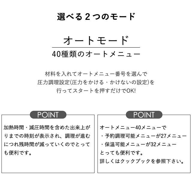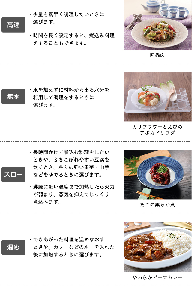 ※うま圧・高速・スロー・無水・温め・発酵・ベイクメニュー