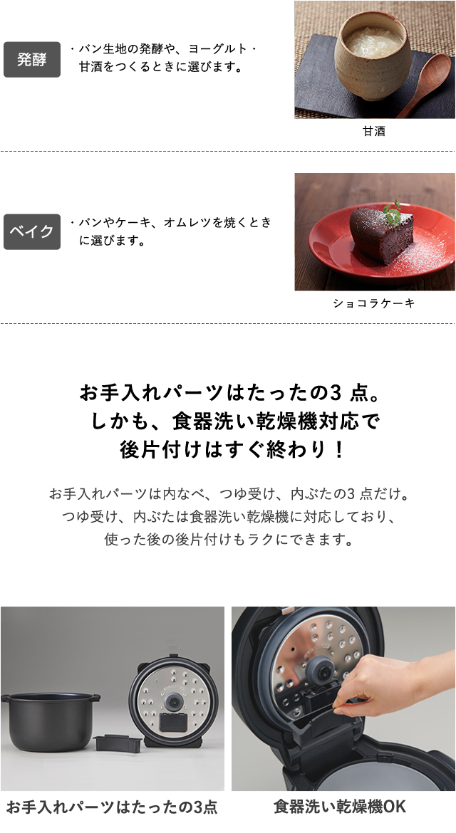 さらにお手入れパーツたったの3点!内ぶたとつゆ受けは食器洗い乾燥機対応