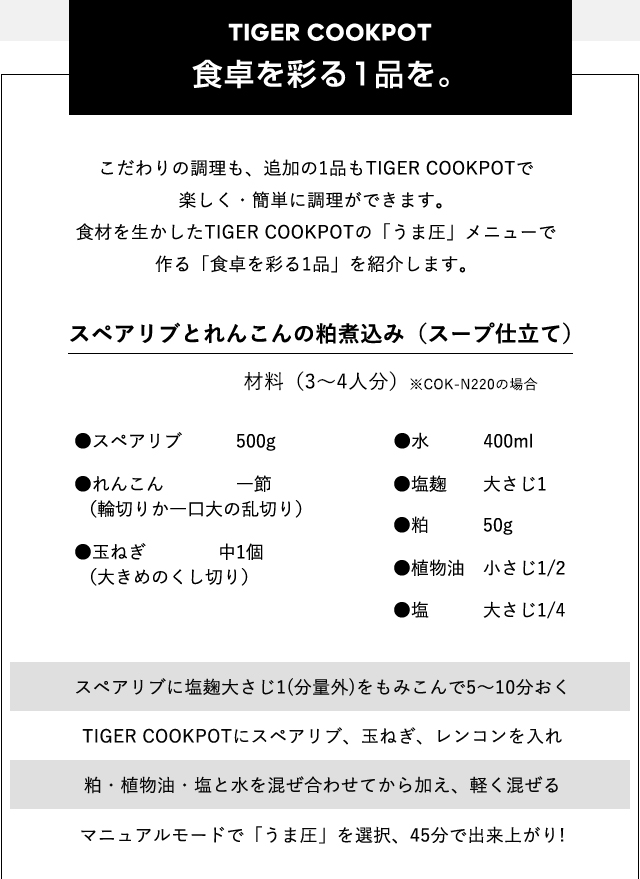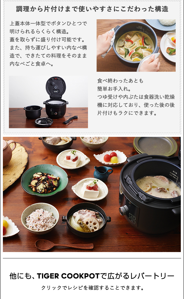 毎日使いやすいにこだわったコンパクトクッカー TIGER COOKPOT