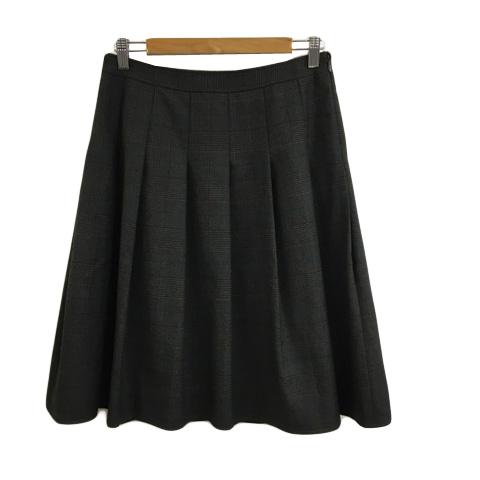【中古】ロートレアモン スカート プリーツ フレア 膝丈 チェック ウール 3 グレー 青 ブルー レディース