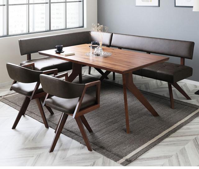 ダイニング 5点セット 150cmテーブル 150cmチェア 160cmカウチ 回転チェア2脚 リビング ダイニングテーブル ダイニングセット チェア 長椅子 新生活(代引不可)【送料無料】