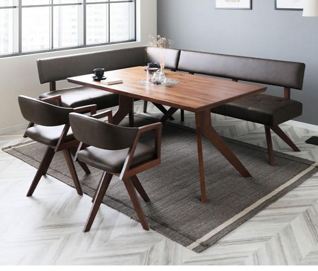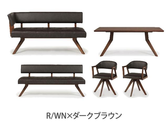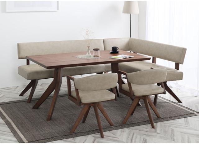 ダイニング 5点セット 180cmテーブル 180cmチェア 160cmカウチ 回転チェア2脚 リビング ダイニングテーブル ダイニングセット チェア 長椅子 新生活(代引不可)【送料無料】