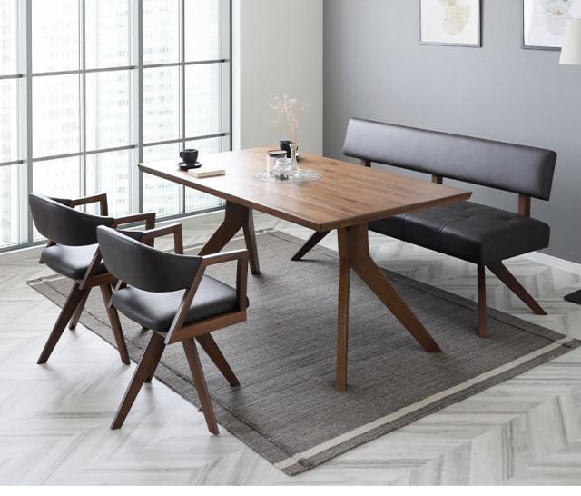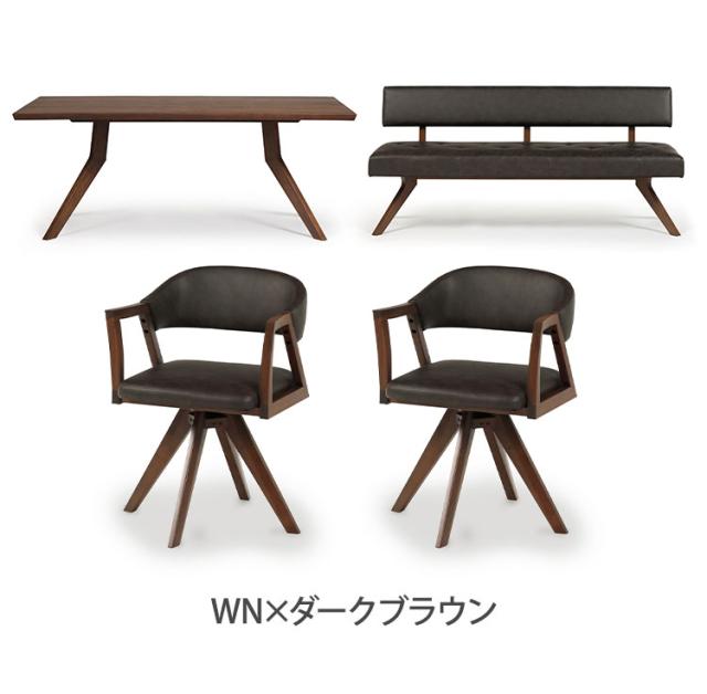 ダイニング 4点セット 180cmテーブル 回転チェア2脚 180cmチェア リビング ダイニングテーブル ダイニングチェア 長椅子 おしゃれ チェア 新生活(代引不可)【送料無料】