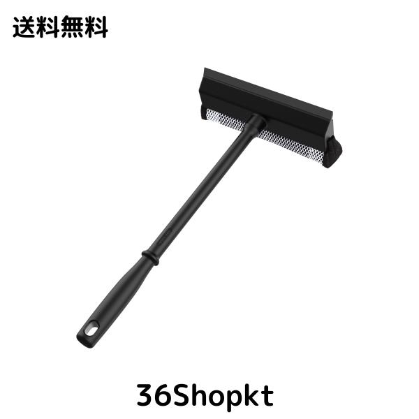 MR.SIGAプロな車用窓拭きスクイージー、浴室 ガラス 壁掃除用 ハンドル付き、2 in 1窓拭きスクイージー窓拭きスポンジ、ブラック