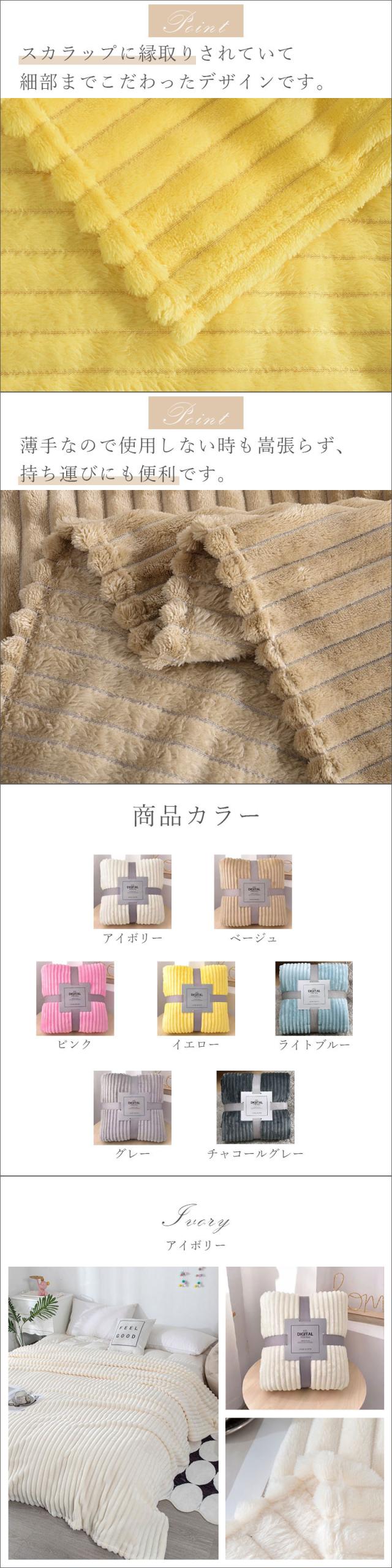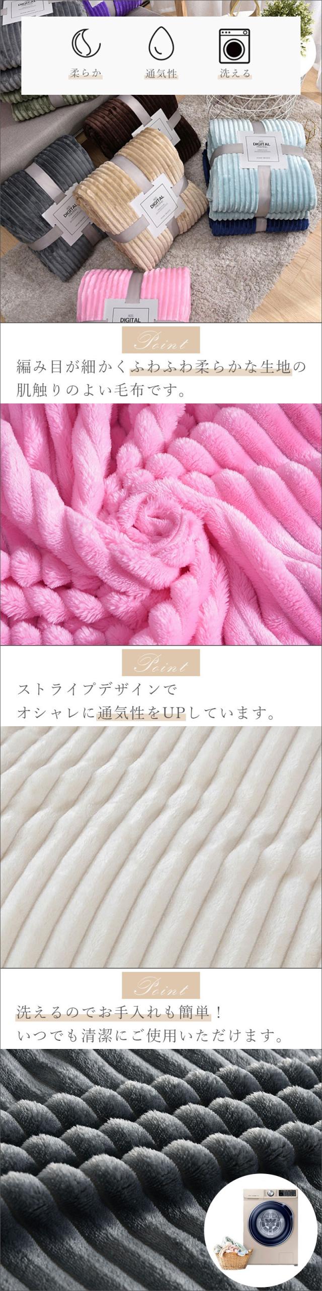 | 商品 特徴 | 【ふわふわブランケット】 編み目が細かくふわふわ柔らかな生地の肌触りのよい毛布です。 【オシャレ】 ストライプデザインでオシャレに通気性をUPしています。 スカラップに縁取りがされていて、細部までこだわったデザインです。 【丸洗いOK】 洗えるのでお手入れも簡単!いつでも清潔にご使用いただけます。 【薄手でコンパクト】 薄手なので使用しない時も嵩張らず、持ち運びにも便利です。 |