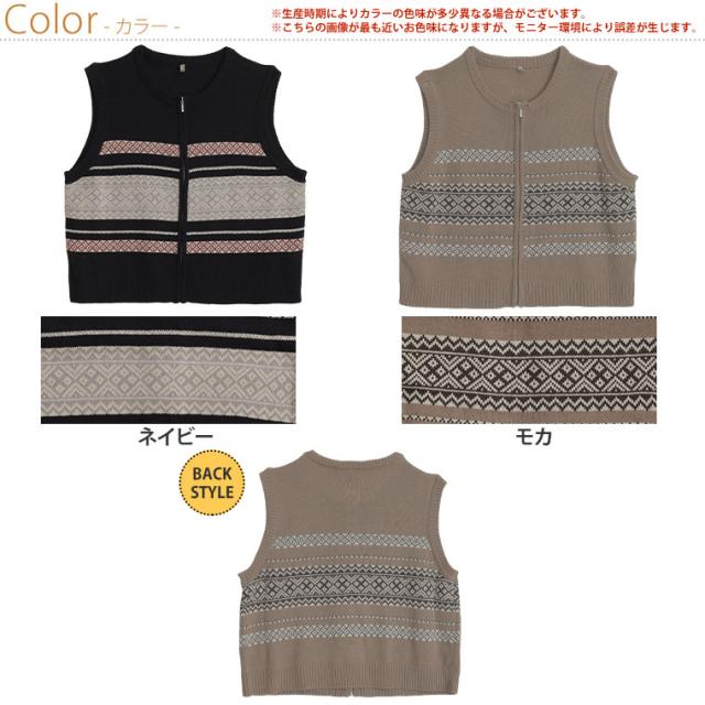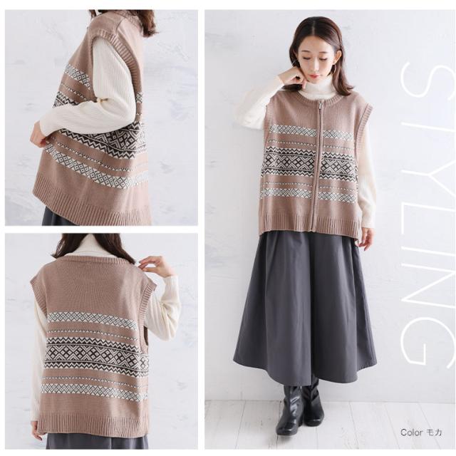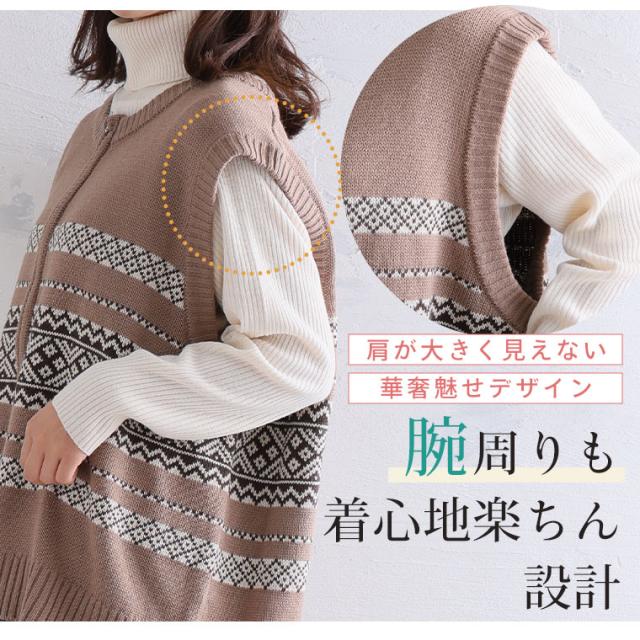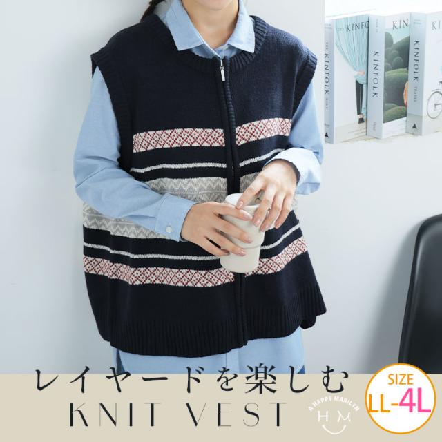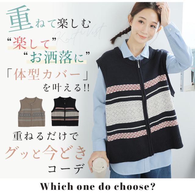 新作 大きいサイズ レディース アウター | カウチン風 ジップベスト [861522] LL 3L 4L