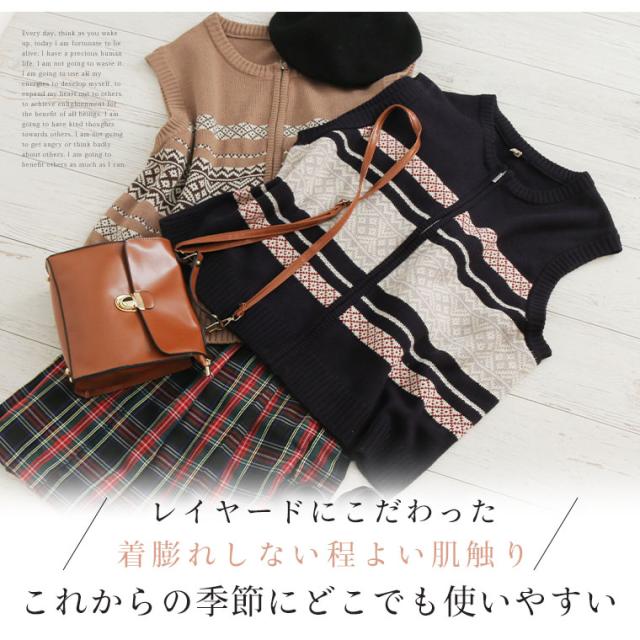 レイヤードを楽しむ カウチン風ジップベスト