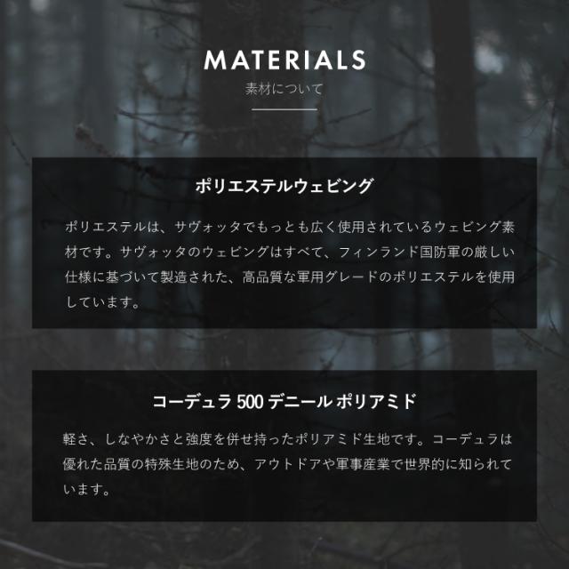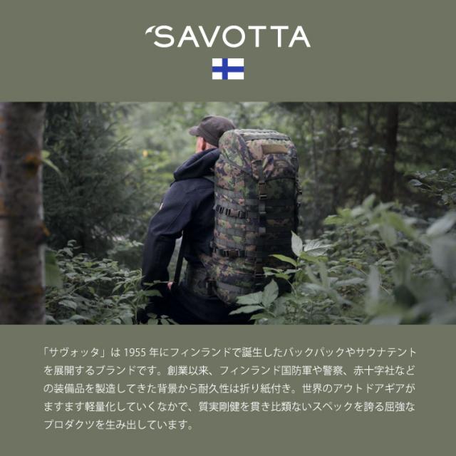 「サヴォッタ」は1955年に北欧フィンランドで創業以来、一般的なアウトドアギアのみならず、軍隊や警察、国境警備隊、赤十字社など特殊な環境下で行動するプロフェッショナル向けの装備品を製造してきました。特にフィンランド国防軍とは50年以上にわたって提携関係を結び、命に関わる現場で求められる厳格な要求に応え続けてきました。 現行のプロダクトの大半は国防軍の装備品と同じ素材を使用し製造されており、強度や摩耗性、耐久性は折り紙付きです。 「アウトドアで使う道具は簡単に壊れてはいけない」という考えのもとで質実剛健なプロダクトを作る一方、スマイルマークの描かれたパッチやストーブを作ったり、ユーモアに溢れた動画を発信したりと、遊び心も持ち合わせている魅力的なブランドです。