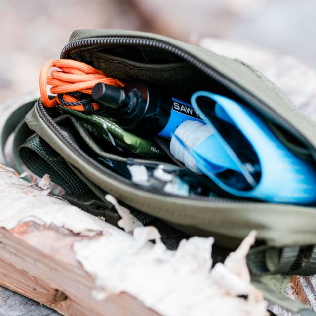 小さい中にも充実の収納を備えた「クッカロ」は、貴重品や救急アイテム、行動食やヘッドライトなど、すぐに取り出したい必需品を最低限まとめるのに重宝するアイテム。ヒップパックとして腰に装着する際もかさばらず、動きを妨げません。また、すっきりとしたデザインはタウンユースでも活躍。ちょっとした買い物に出る時や旅行にもおすすめで、サコッシュやミニショルダーのような感覚で斜め掛けの使用にも最適です。底部には排水用のグロメットも配置されています。