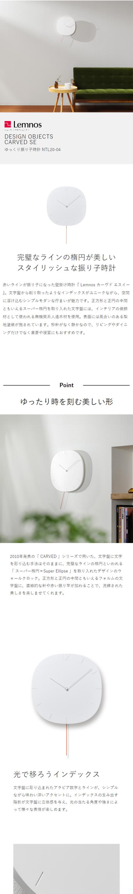 [ Lemnos CARVED SE ]レムノス 掛け時計 振り子時計 カーヴド エスイー 壁掛け時計 ウォールクロック 振り子 時計 おしゃれ 壁掛け 掛時計 かけ時計 北欧 タカタレムノス CARVEDシリーズ NTL20-04