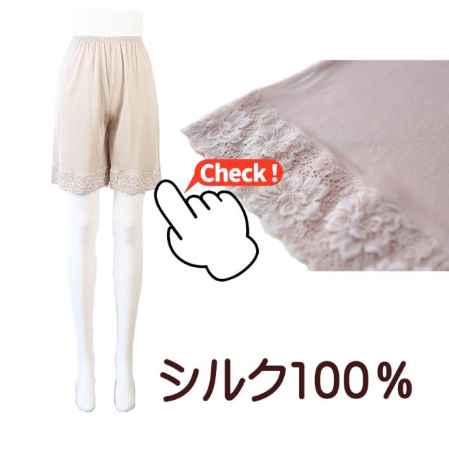 シルク100% 正絹 キュロット ショート丈 レース付き インナー ペチパンツ ペチコート ズボン下 肌着 レディース 敏感肌 肌に優しい 蒸れない 透け防止 温活 冷えとり M L LL 絹 天然素材 マリーネ 股ずれ 防止 快適 保湿