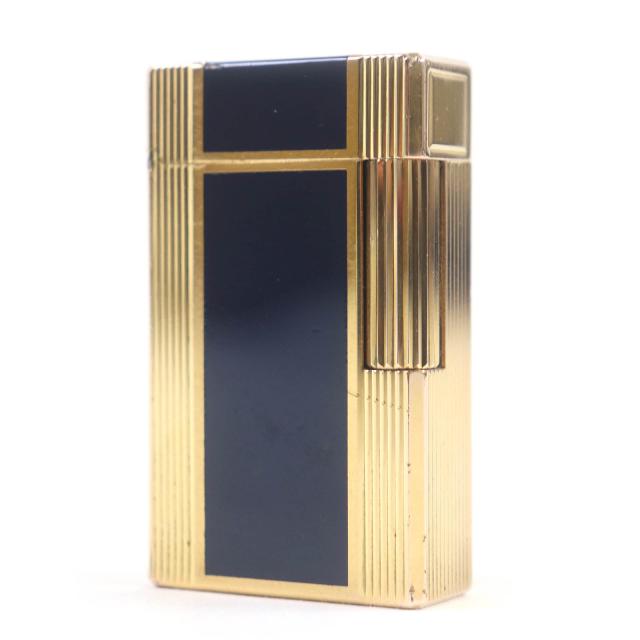 良品□Dupont デュポン ライン1 ロング スクエア型 ローラー式 喫煙具 ガスライター ゴールド ダークネイビー フランス製 着火確認済み