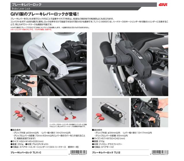 GIVI(ジビ) バイク用 ブレーキロック 樹脂製 簡易パーキングブレーキ 盗難防止 ブレーキレバーロック TL12 48692