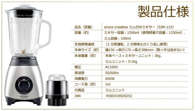 品名(型番):siroca crossline ミル付きミキサー(SJM-115)