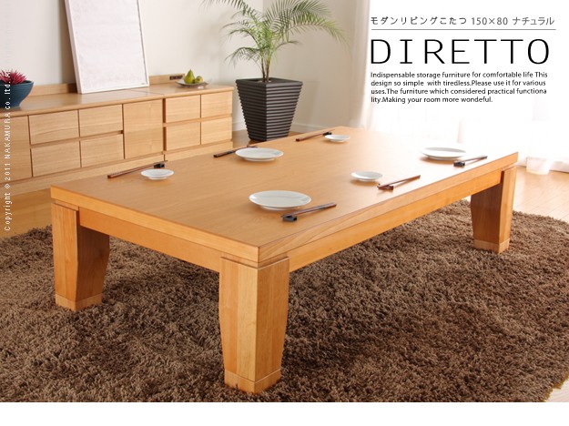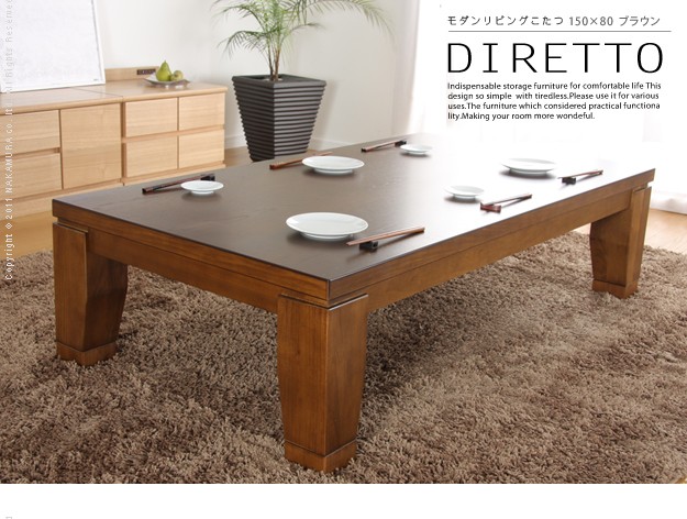 モダンリビングこたつ ディレット 150×80cm こたつ テーブル 長方形 日本製 国産継ぎ脚ローテーブル(代引不可)【送料無料】