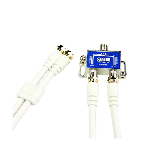 (まとめ)HORIC アンテナ分配器 ケーブル2本付属 1m HAT-2SP875【×3セット】(代引不可)