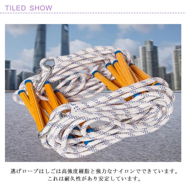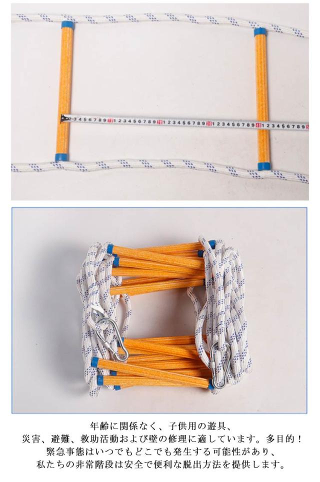 | 【8/10M】 災害時に大活躍する避難用ロープ。 逃げロープはしごは高強度樹脂と強力なナイロンでできています。これは耐久性があり安定しています。 簡単にバッグに収納することができ、持ち運びが便利です。 年齢に関係なく、子供用の遊具、災害、避難、救助活動および壁の修理に適しています。多目的!緊急事態はいつでもどこでも発生する可能性があり、私たちの非常階段は安全で便利な脱出方法を提供します。 | |