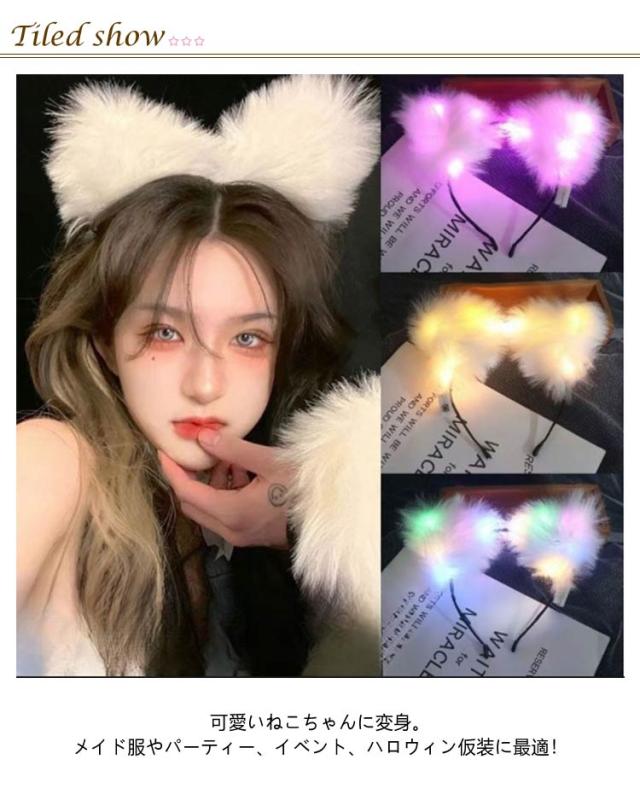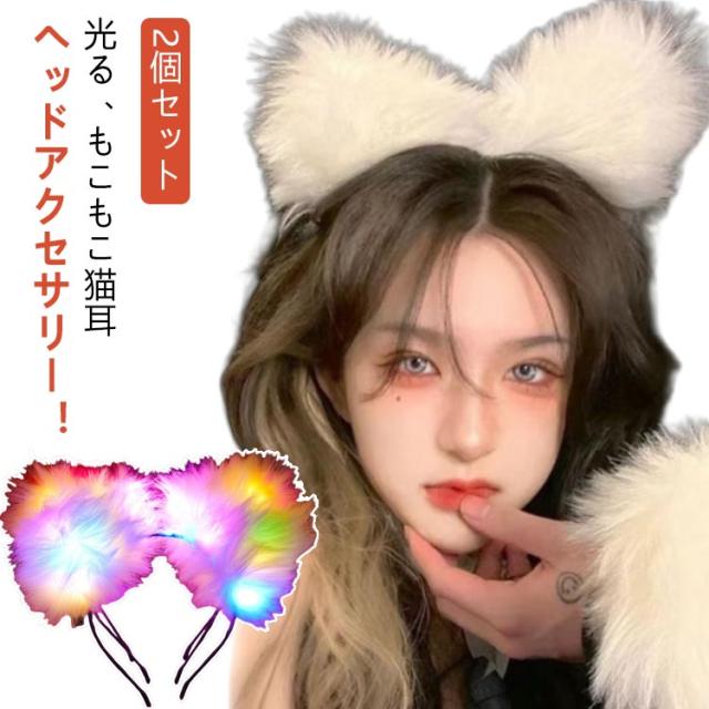 | 【2個セット】 光る、もこもこ猫耳ヘッドアクセサリー! 可愛いねこちゃんに変身。 メイド服やパーティー、イベント、ハロウィン仮装に最適! | |