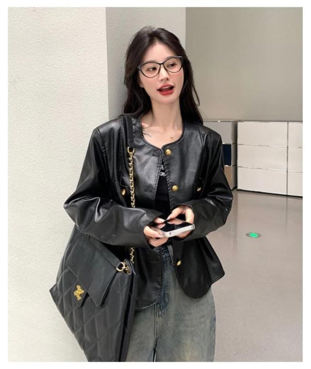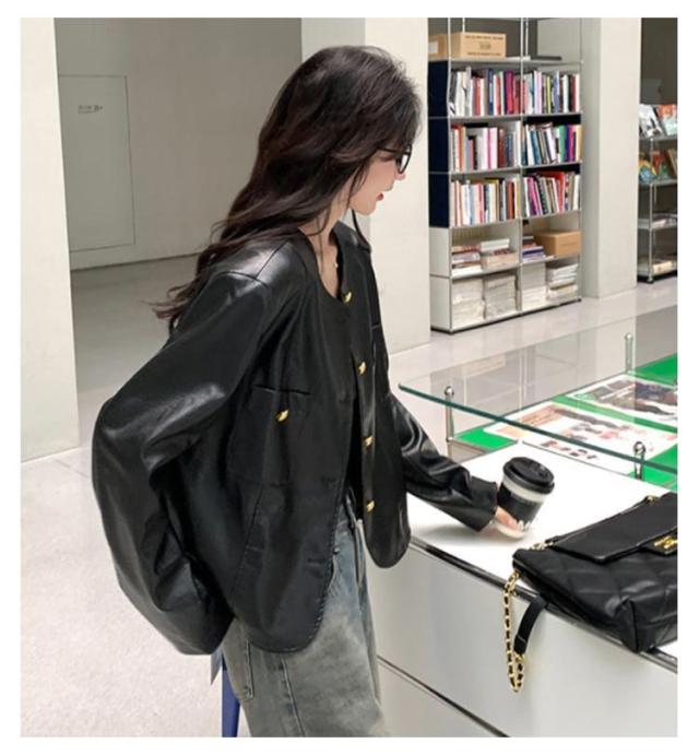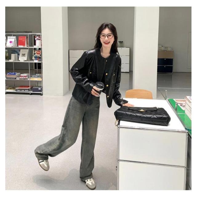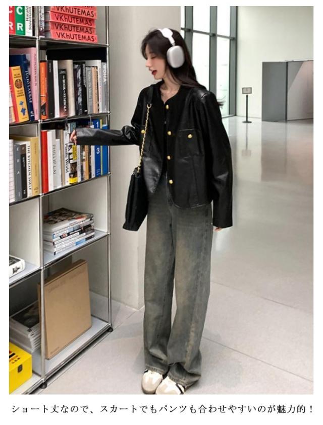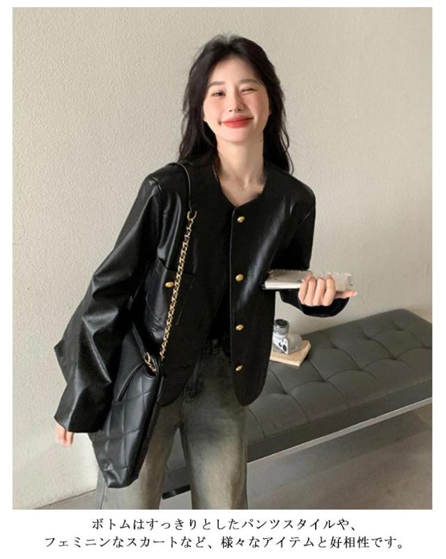 ノーカラージャケット ノーカラーブルゾン コート 上着 レザージャケット エコレザー フェイクレザー 羽織り ブルゾン ノーカラージャケット アウター ライトアウター PU レザー オーバーサイズ 体型カバー 20代/30代/40代/50代