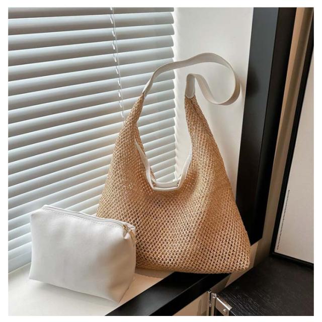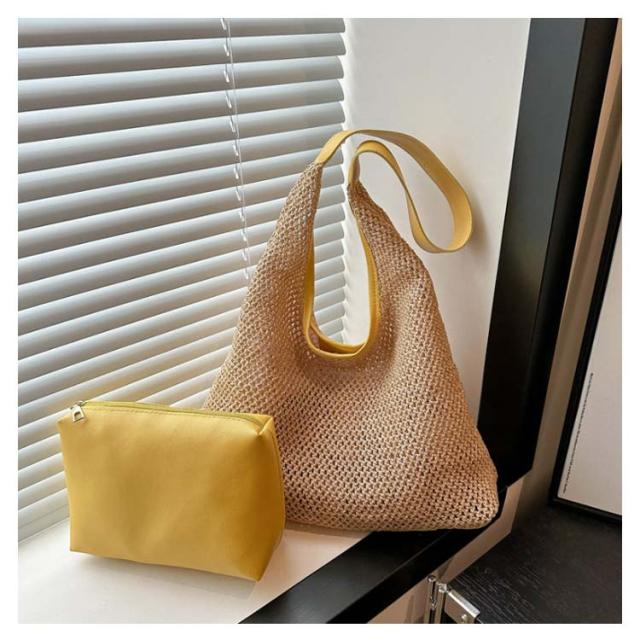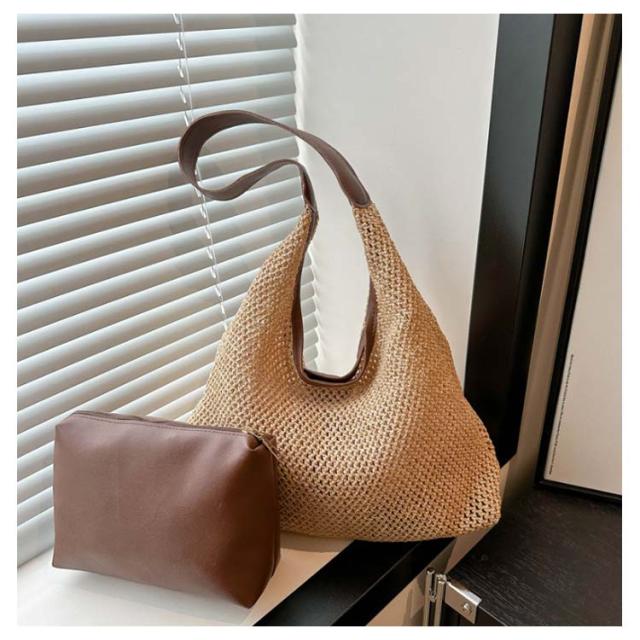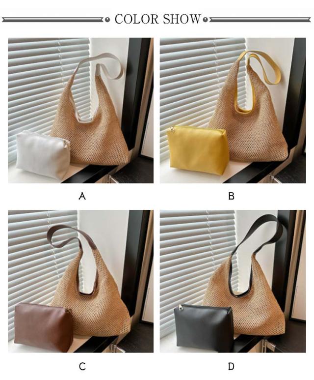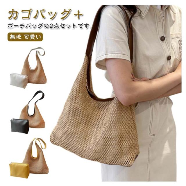 バッグ 2点セット レディース かごバッグ かご トートバッグ ショルダー 肩掛けバッグ カゴバッグ かごバック 夏バッグ 誕生日 編みバッグ おしゃれ 大人かわいい 通勤 肩掛け 無地 可愛い リゾート 2点セット プレゼント